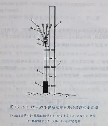 1kV及以下橡塑電纜戶外終端頭示意圖如圖13-16所示。