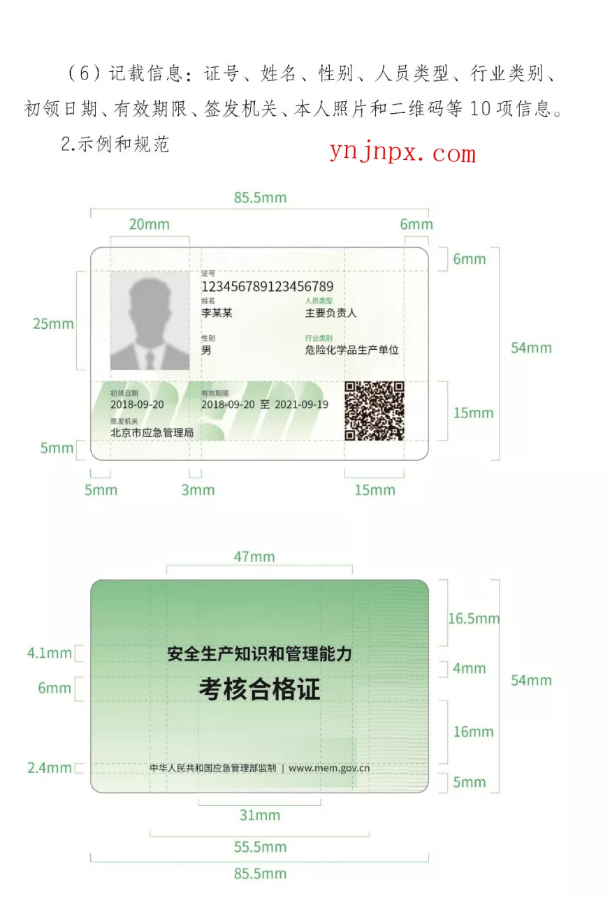 國家煤礦安全監(jiān)察局,各省、自治區(qū)、直轄市應(yīng)急管理廳(局),新疆生產(chǎn)建設(shè)兵團(tuán)應(yīng)急管理局,海油安監(jiān)辦各分部,部機(jī)關(guān)有關(guān)司局,部所屬有關(guān)事業(yè)單位:為適應(yīng)機(jī)構(gòu)改革需要,深入推進(jìn)“放管服”改革,應(yīng)急管理部對(duì)高危行業(yè)企業(yè)主要負(fù)責(zé)人、安全管理人員安全生產(chǎn)知識(shí)和管理能力考核合格證(以下簡稱安全合格證)、特種作業(yè)操作證式樣進(jìn)行了更新,現(xiàn)將更新后的式樣印發(fā)給你們(見附件),并就有關(guān)事項(xiàng)通知如下:一、新版證書分為PVC卡實(shí)體證書和電子證書(含普通紙質(zhì)打印版),電子證書與實(shí)體證書一一對(duì)應(yīng),具有同等法律效力。PVC卡實(shí)體證書由各級(jí)考核發(fā)證部門按照統(tǒng)一樣式自行制作,根據(jù)取證人需要核發(fā),鼓勵(lì)有條件的地區(qū)探索自助制證。各地要在證書核發(fā)后3個(gè)工作日內(nèi)向全國安全培訓(xùn)考試信息管理平臺(tái)推送數(shù)據(jù)信息,方便持證人及時(shí)查詢下載。二、新版證書自本通知印發(fā)之日起啟用。舊版安全合格證和特種作業(yè)操作證自即日起停止核發(fā),已核發(fā)的證書有效期內(nèi)繼續(xù)使用,經(jīng)復(fù)審合格后統(tǒng)一核發(fā)新版證書。三、各地要嚴(yán)格按照《安全合格證、特種作業(yè)操作證式樣和規(guī)范》(詳見附件),使用應(yīng)急管理部統(tǒng)一配發(fā)的二維碼編輯系統(tǒng)印制實(shí)體證書,嚴(yán)禁更改,確保證書樣式全國統(tǒng)一和通用。取得新版證書的個(gè)人,可登錄應(yīng)急管理部政府網(wǎng)站(http://www.mem.gov.cn),從“查詢服務(wù)”欄進(jìn)入“特種作業(yè)操作證及安全生產(chǎn)知識(shí)和管理能力考核合格信息查詢”系統(tǒng),或登錄官方微信公眾號(hào)(國家安全生產(chǎn)考試),按要求進(jìn)行身份認(rèn)證后,下載打印電子證書。四、安全合格證及特種作業(yè)操作證實(shí)行全國統(tǒng)一查詢?傻卿浕蜴溄討(yīng)急管理部網(wǎng)站或?qū)S梦⑿殴娞?hào)進(jìn)行查驗(yàn),不得建立地方證書查詢平臺(tái)或系統(tǒng)。應(yīng)急管理部將開發(fā)證書在線政務(wù)服務(wù)APP,提供更加高效便捷的查詢等服務(wù)。五、證書式樣更新工作涉及范圍廣、人員多,社會(huì)關(guān)注度高。應(yīng)急管理部委托部培訓(xùn)中心負(fù)責(zé)證書核發(fā)技術(shù)指導(dǎo)、系統(tǒng)升級(jí)維護(hù)等工作。各地區(qū)要高度重視、精心組織,保障信息系統(tǒng)和制證設(shè)備升級(jí)等工作的必要經(jīng)費(fèi),并加強(qiáng)宣傳引導(dǎo)和服務(wù),確保平穩(wěn)有序推進(jìn)。六、《國家安全監(jiān)管總局辦公廳關(guān)于印發(fā)安全生產(chǎn)知識(shí)和管理能力考核合格證式樣的通知》(安監(jiān)總廳宣教〔2015〕94號(hào))和《國家安全監(jiān)管總局辦公廳〔2010〕179號(hào)》規(guī)定的式樣廢止。工作中如有問題建議,請(qǐng)及時(shí)與部安全基礎(chǔ)司和培訓(xùn)中心聯(lián)系(安全基礎(chǔ)司,汪文廣,010-64464067;培訓(xùn)中心,翁立佳,010-64463015)。附件:安全合格證、特種作業(yè)操作證式樣和規(guī)范