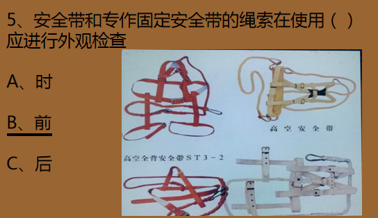 安全帶和專作固定安全帶的繩索在使用(前)應(yīng)進(jìn)行外觀檢查