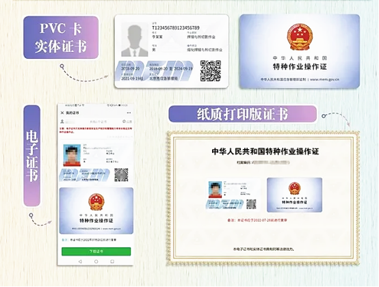 業(yè)操作證線上線下融合管理。持證人可根據(jù)習(xí)慣,在不同的證書使用場(chǎng)景下,自由選擇使用實(shí)體證書或電子證書,忘帶實(shí)體證書時(shí),手機(jī)里的電子證書或者紙質(zhì)打印證書也能同樣使用。用人單位招錄新員工和安全生產(chǎn)監(jiān)管人員到企業(yè)檢查,關(guān)注官方微信公眾號(hào)(國(guó)家安全生產(chǎn)考試)后,拿出手機(jī)掃一掃,就可辨明證書真?zhèn),極大提高工作效率。