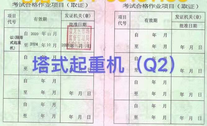 特種設(shè)備作業(yè)人員(塔式起重機司機)Q2操作證-證書樣本