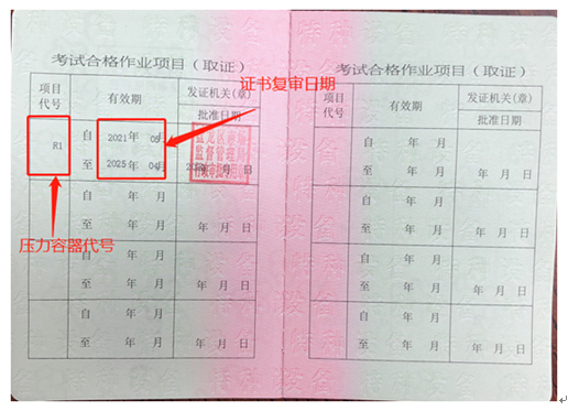 壓力容器證書可分為:快開門式壓力容器操作(R1)”;原“移動式壓力容器充裝(R2)”、“氧艙維護(hù)保養(yǎng)(R3)以及壓力容器安全管理人員(A3)。