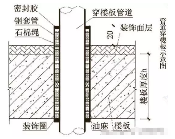施工工序:套管制作與安裝→防火泥封堵→吊洞→安裝裝飾圈→刷漆