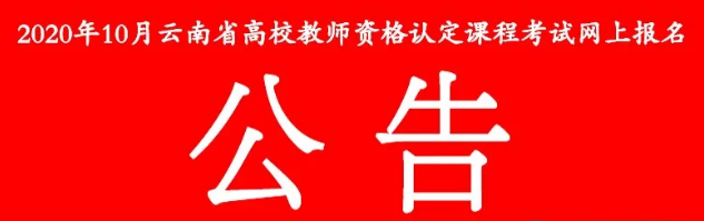 云南省2020年10月高校教師資格認(rèn)定課程考試(以下簡(jiǎn)稱(chēng)“高校教師資格考試”)將于2020年10月17日在全省各州(市)進(jìn)行,現(xiàn)將考生報(bào)名須知公告如下。