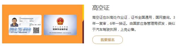 一、報考工種:高處作業(yè)操作證,也叫登高證或高空作業(yè)證,其它可考工種低壓電工、高處作業(yè)、高壓電工、焊工、安全員等