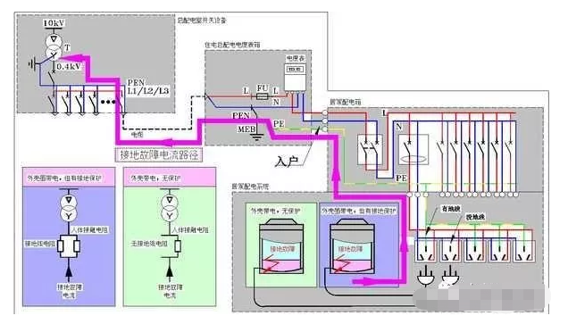 零線與相線構(gòu)成回路對用電設(shè)備進(jìn)行供電,通常情況下,零線在變壓器二次側(cè)中性點(diǎn)處與地線重復(fù)接地,起到雙重保護(hù)作用。