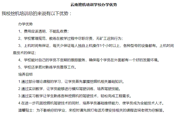 云南挖掘機培訓招生簡章