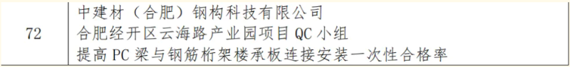 本次競(jìng)賽旨在深入貫徹落實(shí)《質(zhì)量強(qiáng)國(guó)建設(shè)綱要》精神,引導(dǎo)鋼木建筑行業(yè)企業(yè)科學(xué)運(yùn)用先進(jìn)質(zhì)量管理方法,全面提升工程質(zhì)量管理水平。全國(guó)各地眾多鋼木建筑企業(yè)踴躍參賽,競(jìng)爭(zhēng)異常激烈。公司高度重視此次競(jìng)賽,精心組織內(nèi)部質(zhì)量管理小組進(jìn)行成果申報(bào)。最終,公司多個(gè)質(zhì)量管理小組的項(xiàng)目成果在一眾參賽作品中成功突圍。其中,合肥經(jīng)開(kāi)區(qū)云海路產(chǎn)業(yè)園項(xiàng)目QC小組的“提高 PC 梁與鋼筋桁架樓承板連接安裝一次性合格率”課題榮獲二等獎(jiǎng)。該成果聚焦鋼桁梁底部作業(yè)難題,通過(guò)技術(shù)創(chuàng)新,大幅提高了施工效率與安全性,為業(yè)內(nèi)同類工程提供了極具價(jià)值的實(shí)踐范例。此外,中建材鋼構(gòu)公司還有6項(xiàng)成果榮獲三等獎(jiǎng),獲獎(jiǎng)成果覆蓋鋼結(jié)構(gòu)制造、安裝以及施工工藝優(yōu)化等多個(gè)領(lǐng)域,均是公司質(zhì)量管理小組在實(shí)際工程項(xiàng)目中,運(yùn)用科學(xué)方法,深耕技術(shù)創(chuàng)新與質(zhì)量改進(jìn)工作的結(jié)晶。